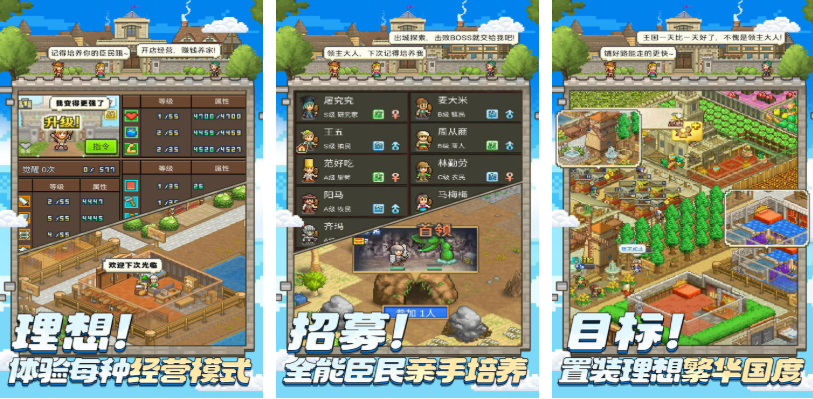 王都创世物语这款模拟经营类的开罗游戏操作特殊,呈现出了中世纪的背景跟特殊的沙盒目标,玩家要尝试建设专属的城镇并慢慢发展成繁华国度,这款像素经营游戏中模式多样且娱乐性不错,但并不存在强制性任务能让玩家自由发展国家,自由招募臣民发展城镇的游戏设定增添了本作的可玩性。