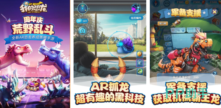 在这款手游里,游戏使用了非常先进的AR技术,为玩家们还原了真实的侏罗纪世界。大家将在这里与超过一百种恐龙一同生活一起冒险。玩家们在游戏里不仅可以驯化恐龙为自己所用,还能建立自己的恐龙基地。并且可以用现代的科技手段,来为基地建立防御对抗邪恶恐龙们的入侵。