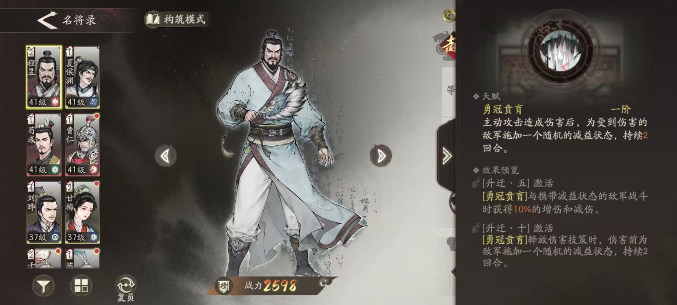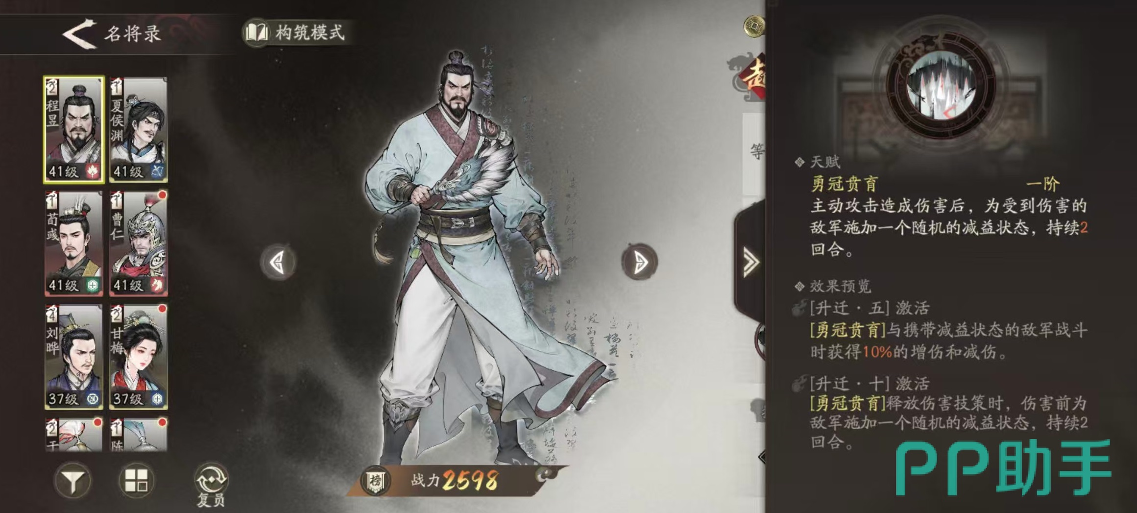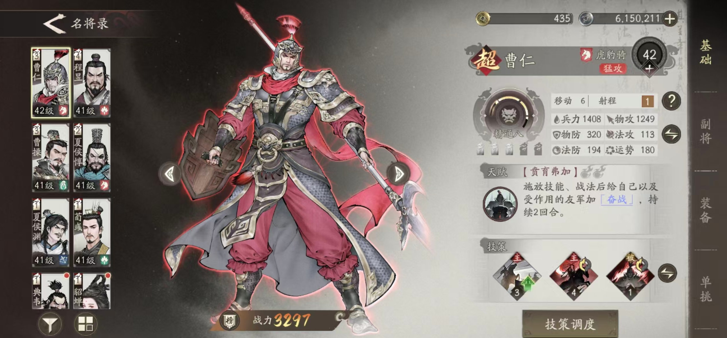 以下是几位非常适合在新手期获取的关键武将推荐。首先是曹仁,尽管经历数次平衡调整,其在前期开荒中的表现依然顶尖。每释放一次技能或战法后,他都能为自身及队友附加强力增益效果,具备高额无视防御能力,配合副将可叠加至100%破防,进阶后还附带额外伤害加成与生命吸取,堪称开荒时期首选坦克型武将。其次是荀彧,作为当前版本中最出色的治疗型辅助,兼具群体回血、状态增益与一定输出能力,实用性极强,从前期一直可用到中后期。此外,程昱也是值得保留的选择,身为谋士却拥有极高生存能力,其技能有概率随机削弱敌方攻防数值,对战斗节奏控制具有积极影响。