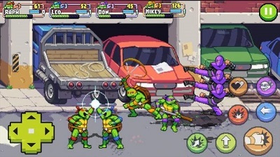 《忍者神龟的影子》主体与动作结合闯关作为了核心机制,游戏内精雕细琢设计的闯关模式,均有着难度和玩法各不相同的设计,玩家需手动的去破除场景中的陷阱障碍,每个忍者神龟都拥有着战力突破的功能设定,以复仇为背景,设计了心弦紧扣的战斗故事,并以高品质的ui风格,对操控界面进行了精细的设计。