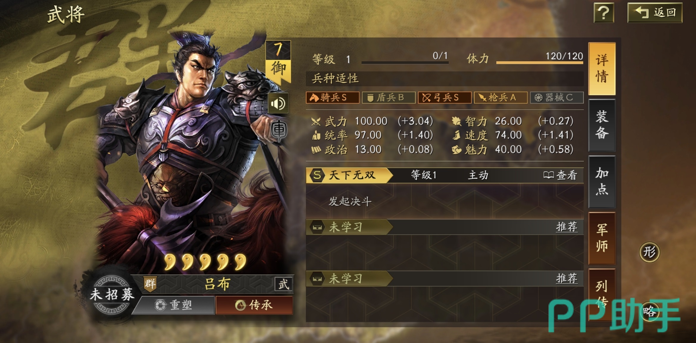 吕布的核心优势在于极高的面板武力成长与技能联动爆发潜力,但其智力属性偏低、生存容错率有限,因此阵容设计必须优先解决控场规避、输出环境保障及伤害倍率提升三大关键问题。实战中需确保其在前中期稳定启动,并在三回合内完成关键目标的清除。