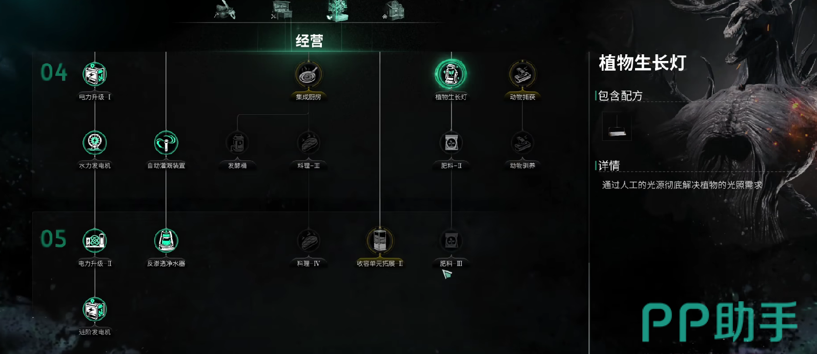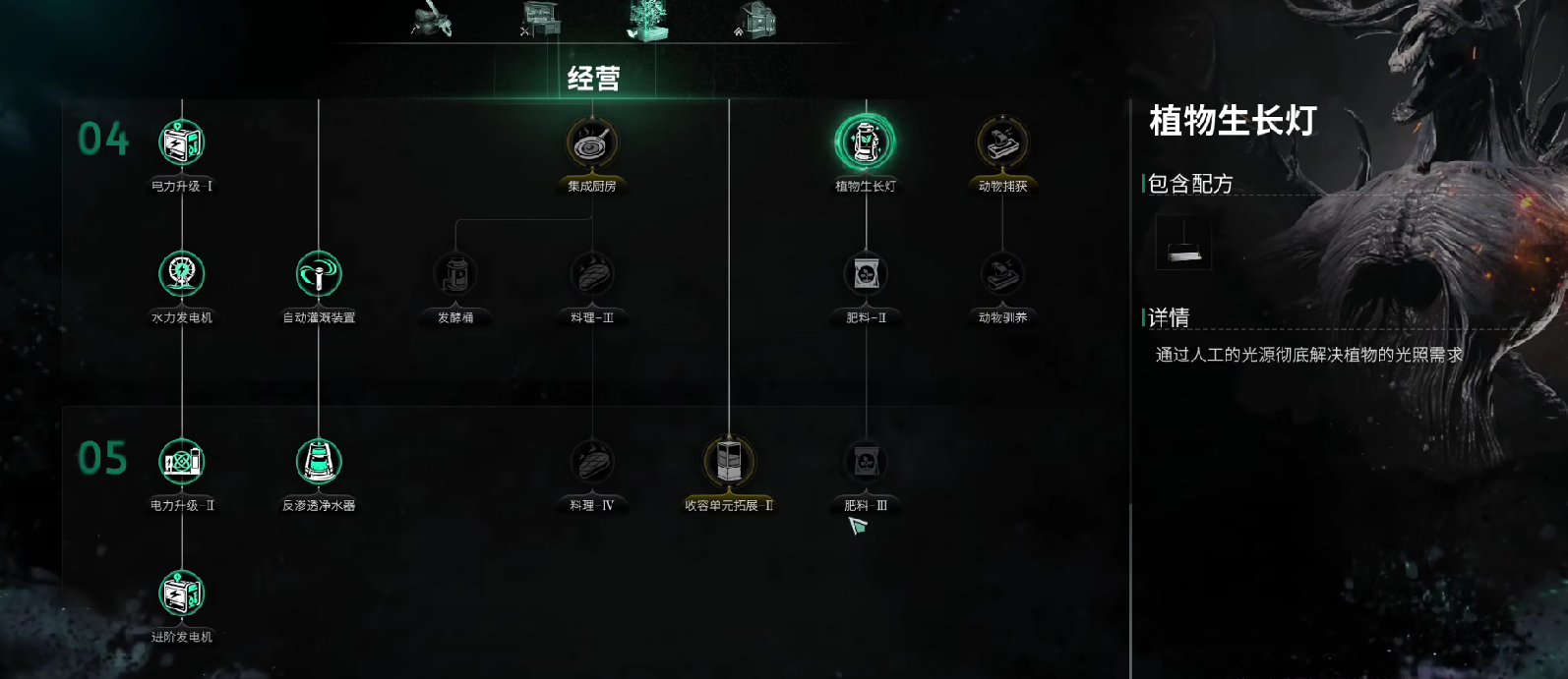 随着游戏不断深入之后,生长灯的照明范围将会得到扩大。此时玩家合理的利用生长灯,降低资源的消耗,也能够让更多的植物促进生长。