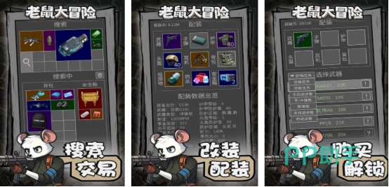 基于老鼠为主要题材,以文字的形式进行展现,这里还涵盖了多样化的不同系统,比如有任务以及地图探索等等。玩家在偌大的地图中,将会面对很多敌人。作为老鼠的你,需要在丰富多样化的武器中,正确挑选武器与之抗衡。要根据武器的后坐力以及射速等各个方面进行考量,因为每个细节都会直接影响到战斗的结果,游戏还以经典的回合制玩法为核心。