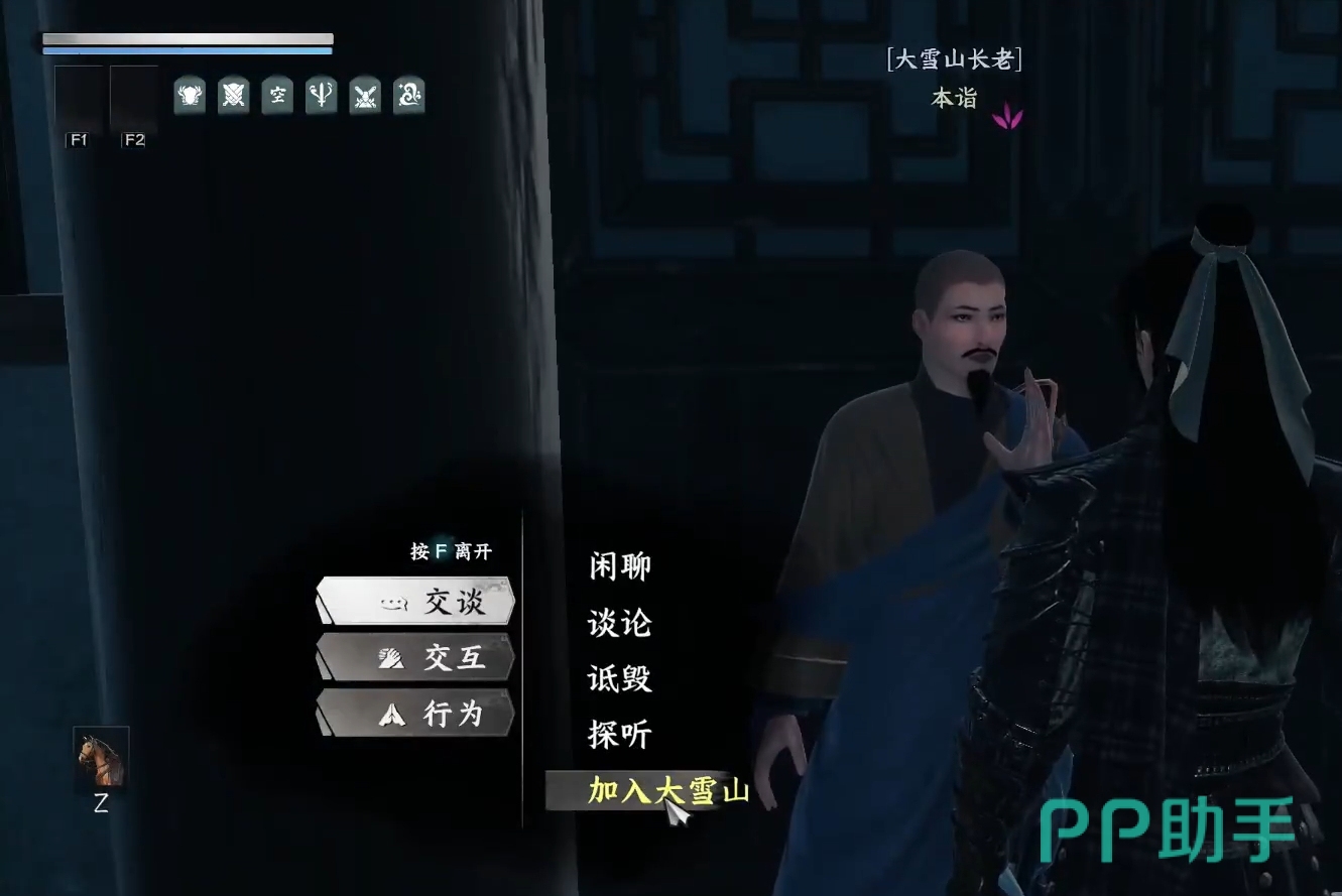 后续阶段仍需持续完成童晓聂指派的任务,每达成一次阶段性目标,便会再次收到本诣的晋升邀请。由内门晋升至关门弟子,需要完成“替天行道”任务线,按照指引成功劫法场救出澄心后,返回本诣处即可完成进阶。接下来欲成为亲传弟子,则需前往大雪山(658,1660)寻找本心,承接并完成“两门之故”任务。最终,当所有条件满足后,可向本诣身边的阿那罗接取“游僧刁难”挑战任务,经历一场高强度战斗并通过考验后,便能正式继任为大雪山掌门。成为掌门后,既可以选择继续执掌门派,带领大雪山走向辉煌,也可前往隋震博处兑换全部可获取道具后选择退出门派体系。