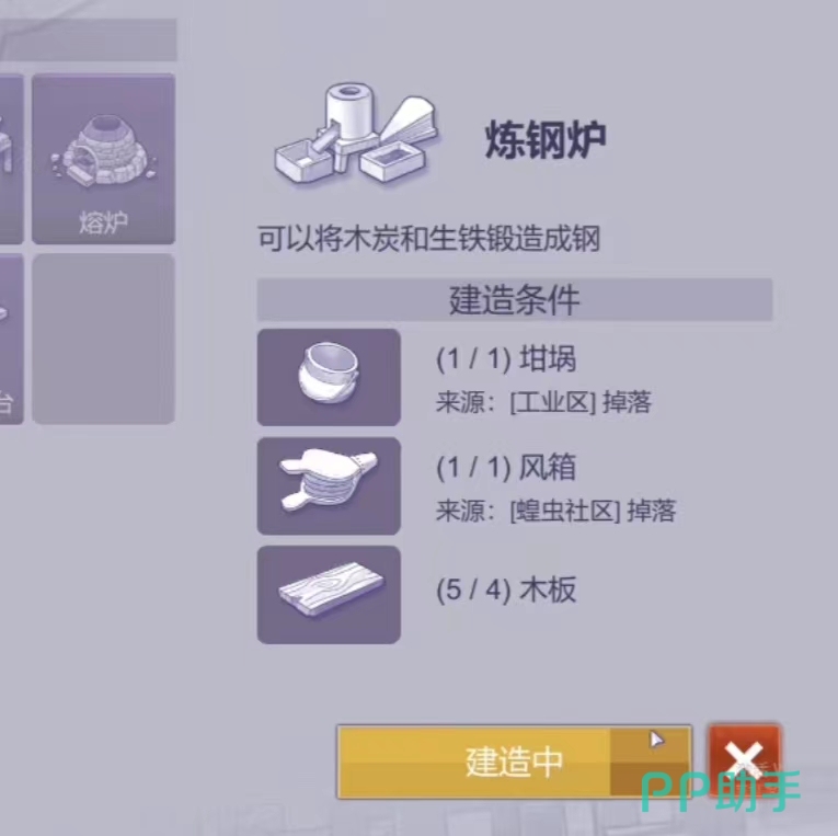 获得以后玩家可以先将炼钢炉建造好,