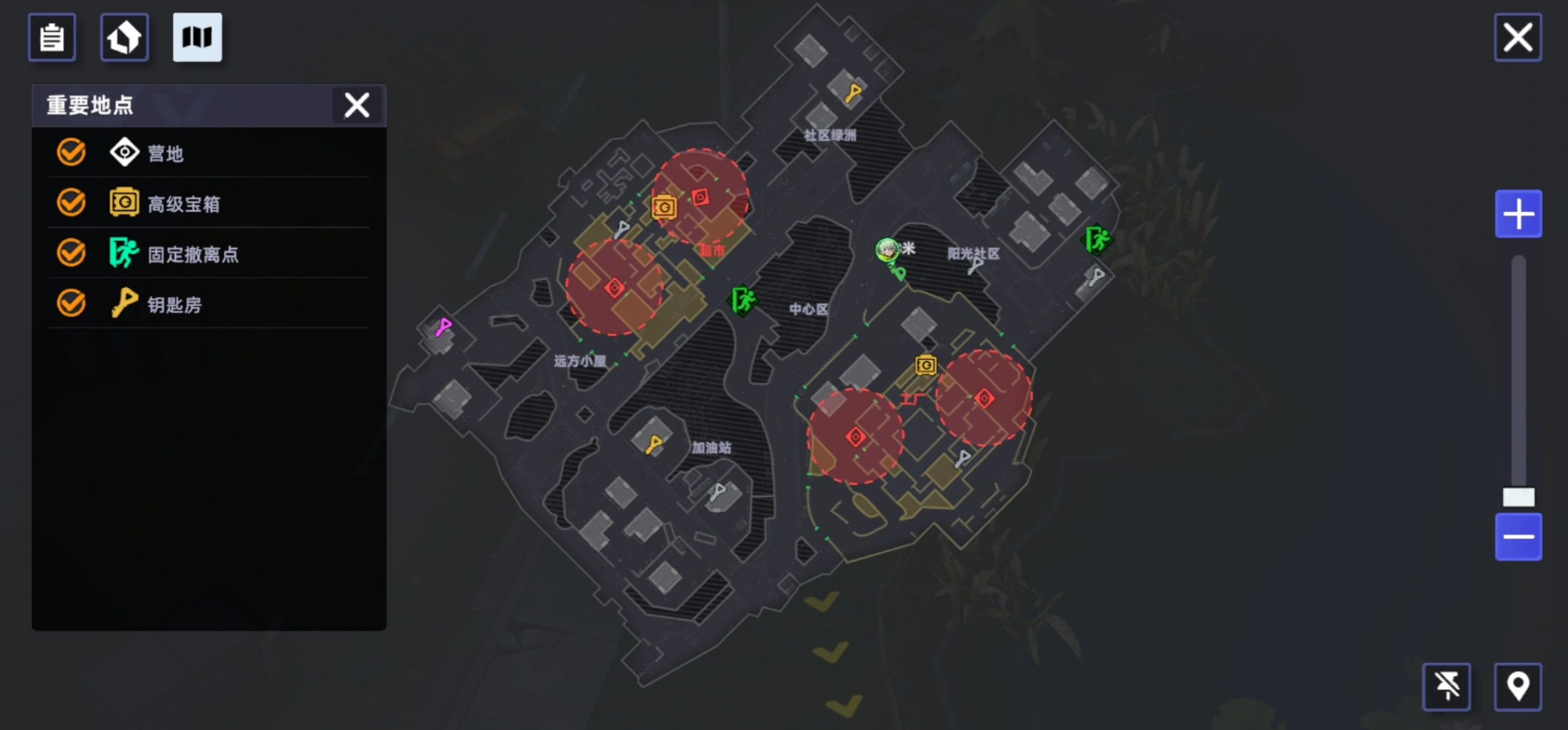 第一处点位位于工厂主建筑外围开阔区域,紧邻大型工业设备。此处地势平坦、视野通透,便于观察四周动向,尤其适合单排玩家驻守操作。靠近交互范围后,界面自动弹出“搜索”提示,点击即可完成首次交互。