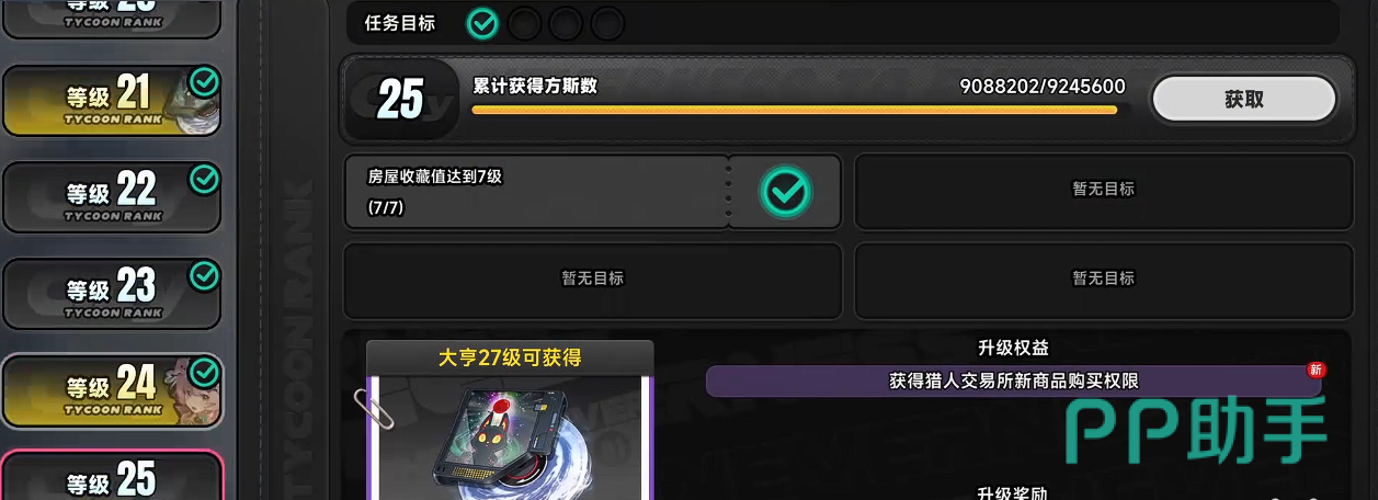 都市大亨共设多级成长体系,每升一级均对应一项专属权限开放。升级路径高度依赖两类核心要素:一是基础货币“方斯”的累计数量,二是特定条件型任务的达成。例如,达到25级需满足“房屋收藏等级≥7”,即玩家须在大世界地图中完成至少7处不同类型的不动产购置与登记;所有任务目标均以游戏内真实数值为判定标准,不可跳过或模拟。当前新用户可通过九游平台预约游戏,该平台为《异环》官方合作渠道,提供高价值新手礼包、连续签到抽奖机制、每日登录即领游戏津贴,节庆期间更有限定万元无门槛实物大奖活动,全程零付费即可体验完整内容。