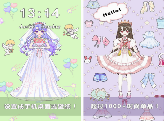 这游戏的玩法非常简单,既能给里边的美女角色穿上漂亮的公主裙,仿佛童话故事中的公主一样,还有超多精美的公主裙以及配饰。通过自由的搭配以后,能使里面的角色变得非常漂亮。清晰又可爱的游戏画面,虽然并不是中文版本的,但依旧能通过点击屏幕上的各种操作按钮,使角色更换喜欢的配饰以及裙子,满足你的爱美之心。