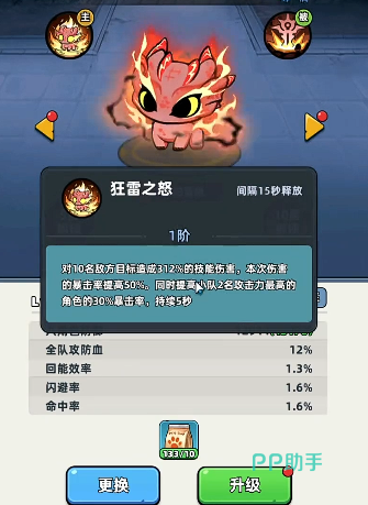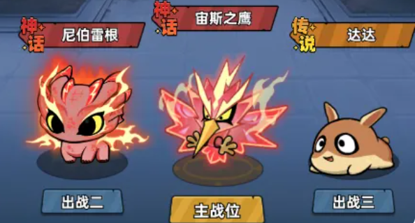 宠物上阵共设三个固定位置(1号位、2号位、3号位),需兼顾功能性互补与属性最大化。优先推荐全红宠配置:1号位首选神话品质(红色)宠物宙斯之鹰,其为主力AOE输出核心,技能覆盖全场且附带高额基础伤害;2号位推荐尼伯雷根或小翼二选一——前者为神话品质,专注提升全队暴击率并附加怒气加速与护盾效果;后者为高性价比过渡选择,虽属传说品质(黄色),但2号位部署时可显著强化单体攻击能力;3号位灵活性较高,达达(传说品质)为通用推荐,提供稳定增益;若已获取极光龙,则更优——其主动技造成群体伤害并附加持续数回合的流血效果,被动每10秒触发一次,为全体队友叠加1层伤害增益,升星至满阶(3星)后可叠加至3层,总计提升30%全队伤害输出。