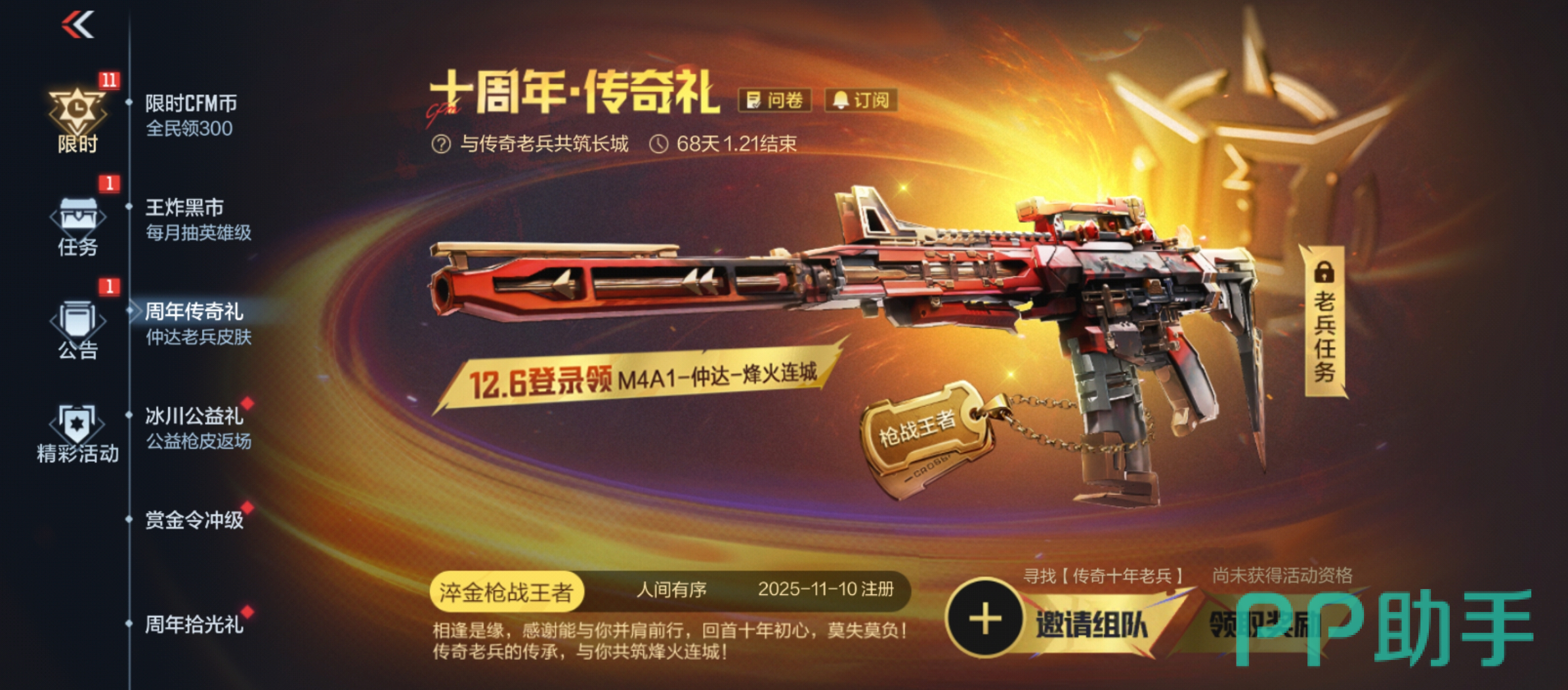 在十周年版本中,全新限定角色“时空旅者”正式登场。该角色具备短暂隐身和加速移动的能力,能够在战场上实现战术突袭或快速转移,极大改变传统作战方式,提升玩家实战表现。此外,还推出了十周年特别纪念武器——王者之尊系列。该武器融合了经典端游元素与未来科技设计,枪身镶嵌专属十周年徽章,击杀时还会触发独特特效,兼具收藏与实战价值。