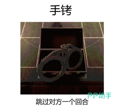 手铐是游戏中唯一具备回合压制效果的道具,生效后使对手跳过下一轮行动。该特性使其兼具进攻加速与防御缓冲双重属性:一方面支持连续输出节奏,加快战斗进程;另一方面可在低血量状态下创造喘息空间,为使用香烟回血、部署锯齿刀蓄力或调整站位提供关键时间差。实战中手铐几乎不存在负面使用场景,获取即具备明确战术收益,建议在道具栏位允许前提下优先保有至少1个。