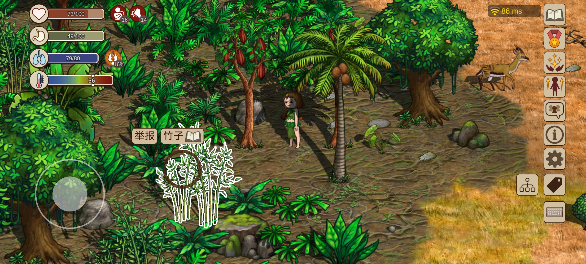 各类资源在雨林中有其特定分布规律:水果多生长于林间开阔地带或树木密集处,竹子和木材需深入丛林方可大量获取,陶土则常见于潮湿泥泞区域。建议玩家根据资源位置提前规划行进路线,避免在复杂环境中迷失方向或浪费行动效率。