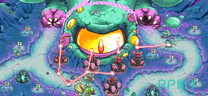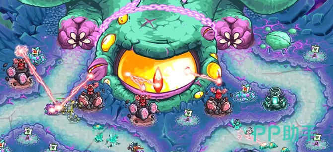 首先就需要明确欲念之巅核心的难点,这一个关卡所采用的就是4个出出兵布局,左右两侧各有一个,上面也有两个。所有的敌人都需要冲向下面的城门,而玩家的核心目标就是坚守眼前的防线,阻止任何敌人去突破。在这一个关卡中有一个大boss,这个大boss简直就是不走常规路。他不需要玩家直接攻击,只要持续把关卡中的敌人消灭即可。不过也有一个棘手的机制,那就会随机传送场上的防御塔,一旦被选中之后就会提前出现红色魔法阵。