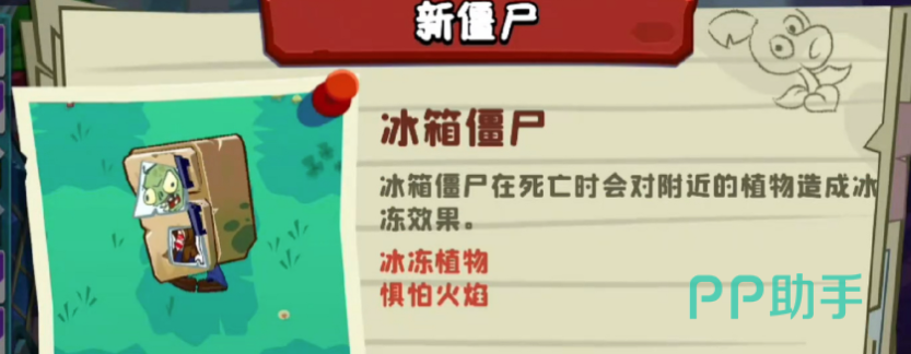 在《植物大战僵尸3》中,冰箱僵尸属于功能型高阶僵尸,外观上被一台陈旧的双门冰箱完全包裹,箱体表面贴有褪色的卡通图案贴纸。其核心机制围绕冰箱外壳展开,具备三大关键属性:首先是极高的物理抗性,外壳能承受普通豌豆射手近百次攻击,且在未破损状态下免疫所有控制效果;其次是反击机制,当外壳被击破后,会立即释放冷冻气体,对周围3格范围内的植物造成持续5秒的冻结状态,使其无法执行任何动作;最后是隐藏单位机制,冰箱内部藏有一只普通僵尸,外壳破裂后该僵尸会立刻现身并继续前进,形成二次威胁。