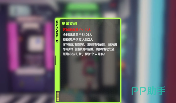 游戏内不存在常规金币或钻石体系,核心流通单位为“剩余生命时间”,直接映射角色在虚拟都市中的存续资格。该数值会随日常行动持续消耗,若归零则触发强制退场机制:身份档案清除、网络访问权限永久注销,并被系统标记为“黑户”。因此,时间管理是贯穿全程的战略重心。玩家可通过多种现实向职业路径获取时间——例如在夜店担任调酒师积累小费时间,或进入金融区参与高风险虚拟股市交易,亦可承接数据掮客任务,在灰色地带换取稀缺时长。