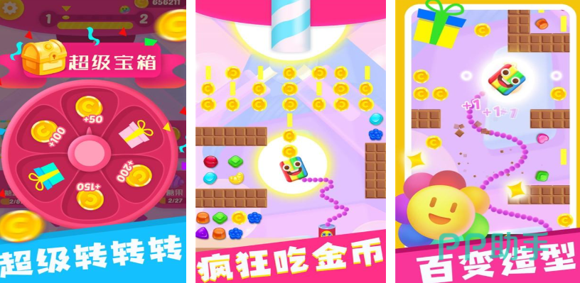 贪吃糖果游戏里,游戏整体色调鲜艳亮丽,以粉色、紫色、蓝色等柔和且充满活力的色彩为主调,勾勒出如糖果仙境般的场景,主角小蛇的形象设计也十分可爱俏皮,一双灵动的大眼睛,配上色彩斑斓、可解锁更换的蛇皮,如彩虹糖蛇皮、巧克力酱蛇皮等,与整个梦幻场景相得益彰,极大地增强了玩家的沉浸感。