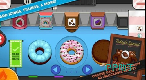 游戏的画面真的是比较可爱的,可以有效实现一个从无到有的过程,在视觉上就会有一种愉悦的感觉。每一个顾客的口味并不相同,玩家所需要做的就是根据不同的口味,然后去制作甜甜圈。另外每一个顾客所要求的时间也会有所区别,会非常考验每一个玩家的手速以及个人的耐心。