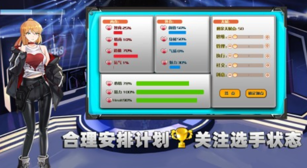 游戏中的美女电竞队是菜鸟级别的……作为电竞经理的你必须重振旗鼓帮助战队磨炼,不断参加比赛磨炼技术才有机会夺冠,你可以跟这些美少女电竞选手交流交互,并合理规划一些锻炼计划强化电竞实力,简陋的基地也可以尽情翻修焕然一新,不断向强大战队发起挑战会让大家领悟不屈不挠的精神,一起在电竞环境中强化自己的操作技巧吧。