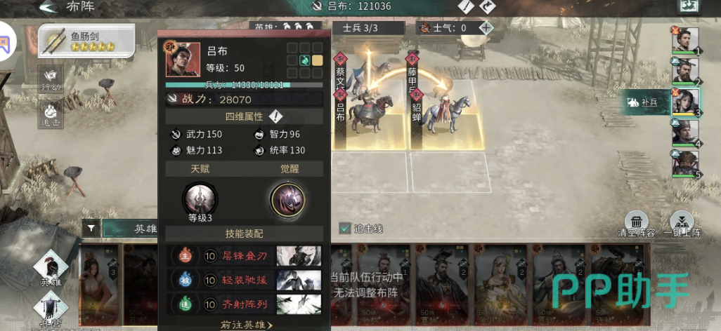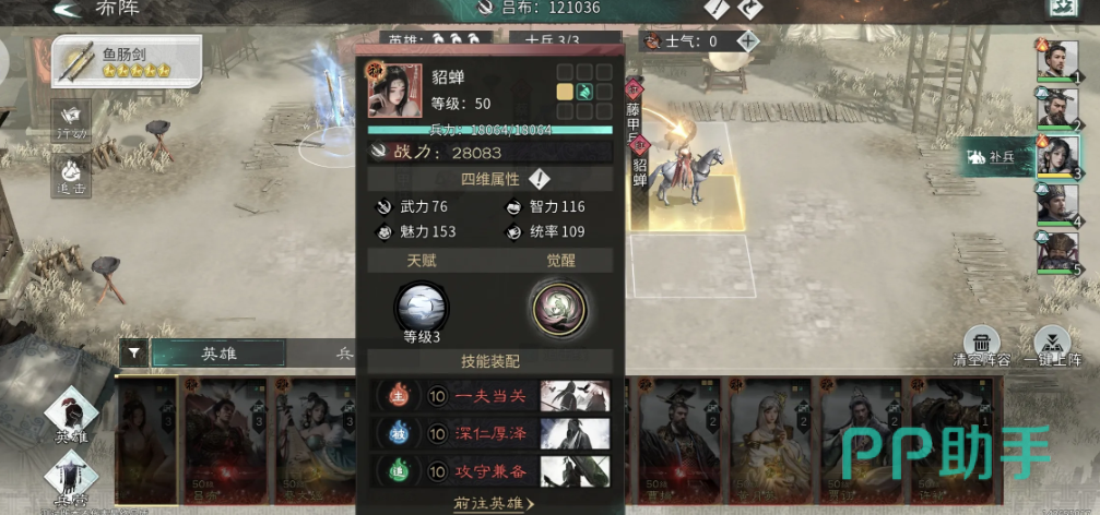 在阵容搭配方面,最具代表性的组合为“凤仪亭队”,由貂蝉、吕布与董卓三人构成,形成前排承伤、中排辅助、后排爆发的标准结构。董卓担任主坦,依靠高生存能力以及嘲讽和统率夺取类技能吸引敌方火力并削弱对手输出;吕布作为主力输出,拥有武力吸取与追击类被动,能在短时间内打出高额伤害;而貂蝉则通过技能为吕布提供攻击增益,并根据吕布造成的伤害生成护盾进行自我保护,实现攻防一体的协同效应。站位布局上需确保吕布与貂蝉处于彼此的追击影响范围内,同时让吕布覆盖董卓的追击区域,以最大化技能联动。技能装配推荐为貂蝉配备如凌波微步、兵无常势等侧重回复与增益的功能性技能,进一步强化团队支援能力。