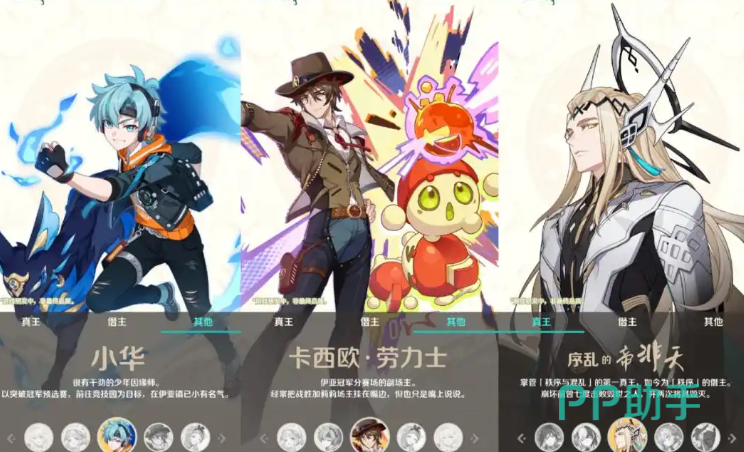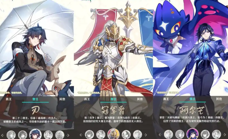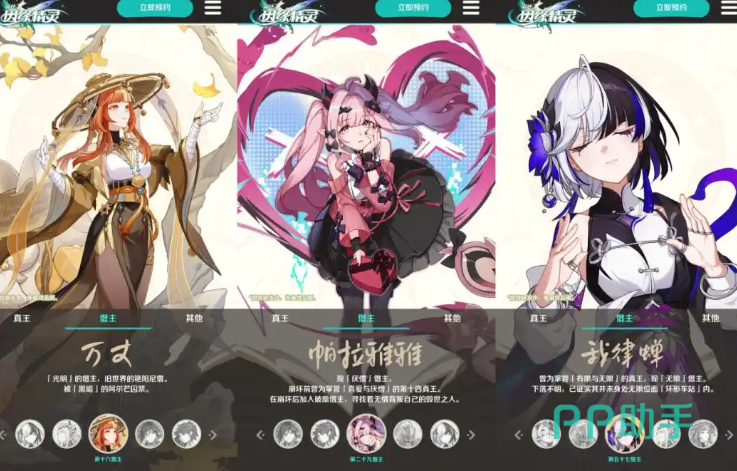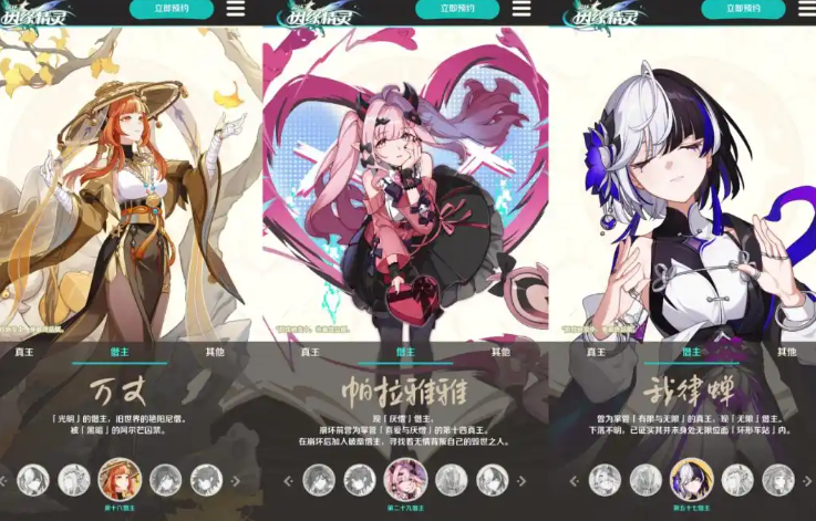 《崩坏:因缘精灵》的角色架构设计颇具深意,不同阵营之间的角色不仅具备独特的战斗职能,还承载着深厚的世界观背景。通过崩坏因缘精灵人物大全的整理,我们可以看到,真王曾是旧世界掌控成对元理的存在,他们的命运轨迹几乎映射了整个旧世界的覆灭过程;而僭主则在新秩序中执掌各个独立位面,各自维系一种元理的运行。