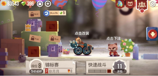 有趣的对战手游进入游戏后,我们可看到非常可爱的喵星人,帮助小猫咪收集不同的零部件与工具,打造超强战车,然后与其他对手展开作战。游戏主打1v1战斗,提前收集好相应的零件,创作出最强战车。有非常细腻又唯美的画风给玩家带来出色的视觉享受。可爱的猫咪形象无比呆萌,绝对让你爱不释手,独特又诙谐的处理方式让原本硝烟弥漫的战场,变得更容易接受,各种场景都做了卡通化处理,轻松无比。