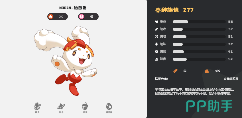 今天给介绍的这个宠物看起来是辅助类能力,所以很多玩家以为它是草系,但是其实它属于火系,今天洛克王国世界治愈兔怎么样大家先要从最基本的玩法中开始了解,它平日里都是栖息于港木丛中,若是身体抱恙、感官欠佳的小洛克轻轻抚摸它那毛茸茸的小脚,便能神奇地感受到病痛渐渐消散,所以在角色的制作上面也是偏向于治愈效果比较强的,当然在战场上它不止这些效果。