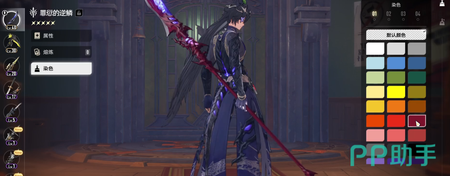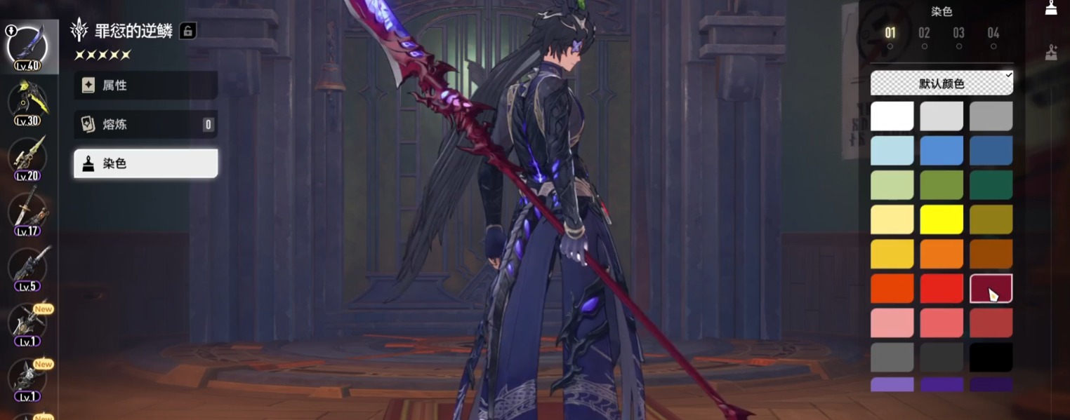 进入整备界面后,可找到内置的武器管理系统,其中近战武器的相关设置位于页面上方第二个标签页。点击进入后,左侧区域会显示当前已拥有的近战武器列表。若想提升武器性能,可通过同类型武器进行升阶熔炼,从而增强基础伤害与附加属性。同时,系统还提供武器染色功能,右侧界面支持选择不同部位及颜色方案,让玩家能够个性化定制自己的装备外观。