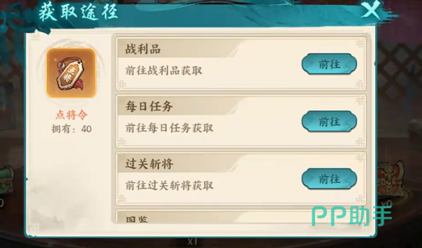 首先进入道具界面点击“点将令”,即可查看当前所有可领取/兑换入口。其中,“战利品”系统提供持续性产出——通过开启宝箱获取,但仅高阶品质(如金宝箱、玄铁宝箱)具备掉落概率,低品质箱子无掉落,存在一定随机性;而“每日任务”则属于稳定收益来源:完成指定活跃度后,领取活跃礼包时固定附赠点将令,单次数量虽少(通常为1–3枚),但日积月累,每月可稳定收获近百枚,是平民玩家最应优先保障的基础渠道。