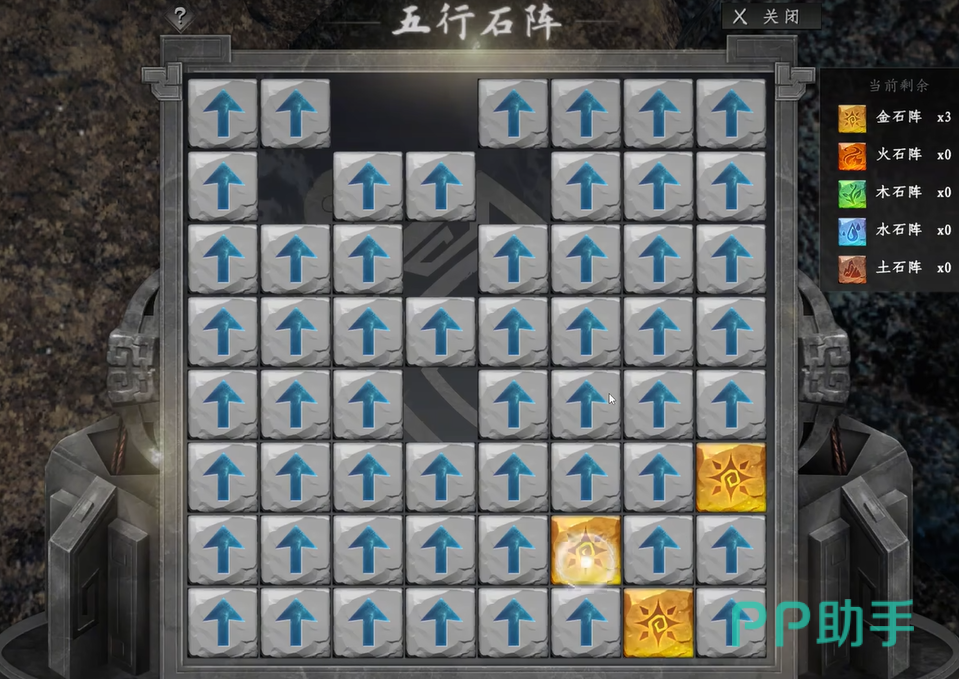 大厅角落设有一个不起眼的宝箱,内含回春续骨丹的炼制配方。获得配方只是第一步,真正的难点在于进入地宫前必须破解一道五行石阵机关。该机关由五种颜色的石块构成,玩家需通过滑动操作,使相同颜色的石头排列成直线。每次移动都会牵动相邻石块位置,极易打乱已有布局,因此需要高度专注与逻辑推演能力。建议逐步尝试不同组合,耐心调整,直至图案完全对齐方可通行。
