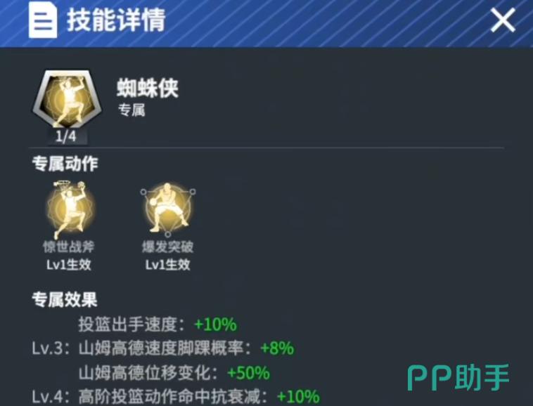 米切尔在游戏中,他的速度比较快,力量比较强,强度是比较高的。而他在体验游戏的时候,一旦解锁解锁了蜘蛛侠这个专属技能之后,他可以爆发性的突破,还能够完成扣篮,并且在扣篮的时候,能够有效的提高抗盖帽的概率,达到了15%。