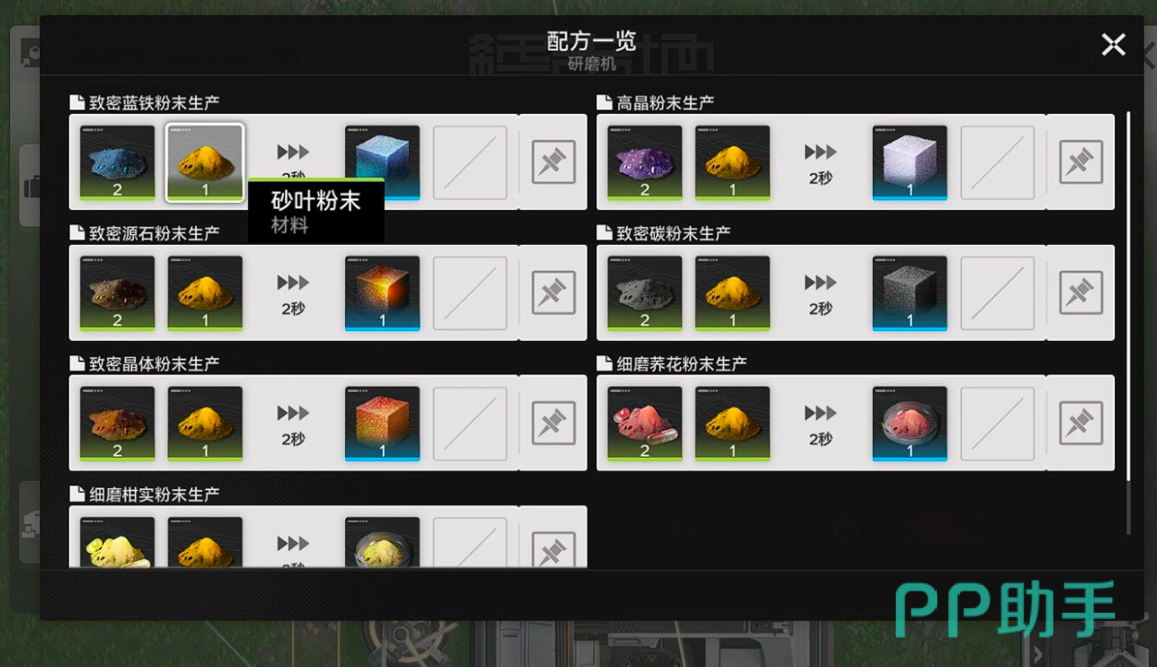 需注意的是,原始砂叶不可直接用于合成或升级,必须经研磨机加工为“砂叶粉末”方可投入后续使用。加工比例为1:3,即每份砂叶产出3份粉末;单次加工耗时仅2秒。推荐配置三台研磨机并联运行,并通过传送带统一供料,以实现连续化生产。优化要点在于确保传送带处于负载均衡状态,同时可部署具备“机械效率加成”特性的干员驻守,进一步提升研磨机工作效率10%至15%。