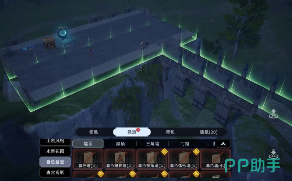 完成选址后,进入材料准备阶段。玩家需要收集轻木、石头以及金属等基础建材,这些资源可在地图上的森林区和矿区采集获得。储备充足后,便可开始规划整体布局。推荐将营地划分为三个主要功能区:生活居住区、农业种植区和科技发展区。