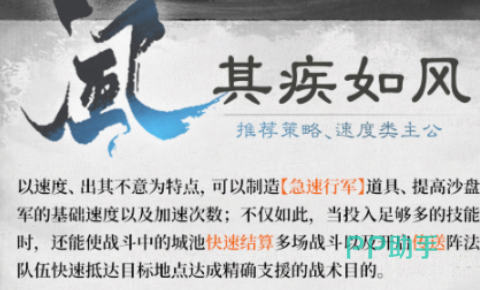 兵法系统是沙场点兵的核心驱动模块,以沙盘推演为底层逻辑,强调多维决策:行军节奏、地形适配、敌我克制及资源调度缺一不可。首推兵法【其疾如风】,专注机动性强化——提升基础行军速度,增加加速指令使用频次;当技能点投入达标后,激活传送阵法功能,实现跨区域精准支援,大幅提升战略响应效率。