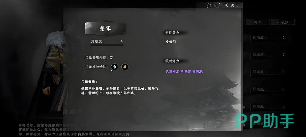 最后提醒各位玩家,在决定加入楚军前务必慎重考虑。该选择为永久性设定,不可中途退出。但值得注意的是,这并不影响你加入其他非敌对门派,只是三大军事阵营之间互斥——只能三选一。另外,在执行悬赏任务时,请确保逐个完成,避免同时接取多个任务导致流程卡顿,影响整体体验。