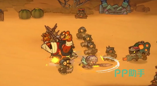 第二关包含四张独立地图:泥鱼沼泽、废村、荒漠与冰音洞窟。泥鱼沼泽以小型鱼人及猎蛛为常规敌群,Boss固定为变异神仆——该巨型单位可喷射毒液、召唤变异单位并执行范围震地攻击。废村区域部署变异村民、野猪等基础单位,以及变异巨人屠夫精英怪;Boss配置为守卫与炼金术士。守卫复用园丁的剪刀攻击模板,并新增全屏蓄力拍击,但无形态切换;炼金术士为双体协同型Boss,双方各自拥有独立血条,任一单位被优先击杀将触发另一方狂暴化,其攻击密度与覆盖范围均超越前序所有狂暴形态。荒漠地图中史莱姆按元素属性分化,蜥蜴人则依体型划分为普通(小型)与精英(巨型)两类;Boss为船长与宝藏安康:船长可操控火炮实施全场扫射,宝藏安康则通过红圈标记锁定区域并吞噬范围内所有单位。雪原地图配置傀儡与雪兽作为基础敌群,同样按体型区分强弱;Boss为剑客与巨像:剑客以高速斩击与分身机制构成多线压制,巨像则擅长冰柱天降与地面震波技能组合。