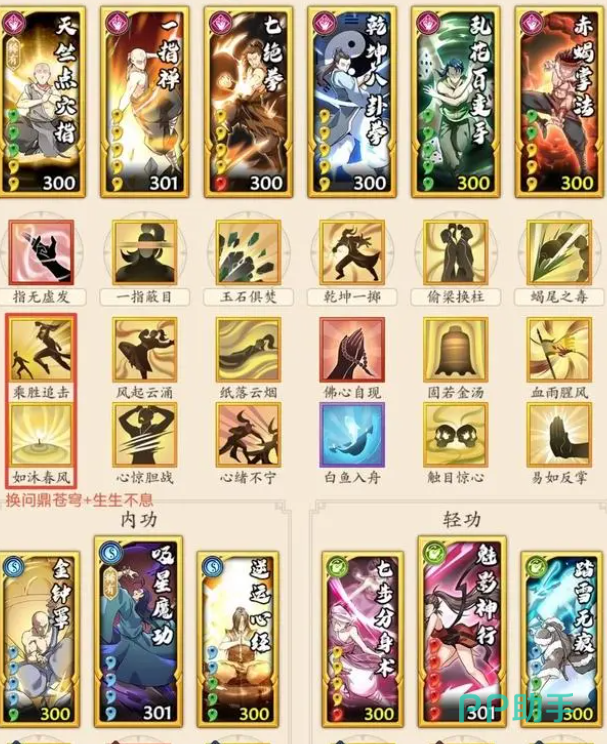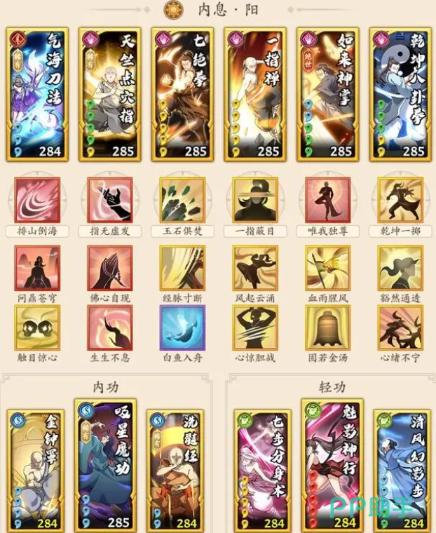 内功这里搭配【金钟罩】+【吸星魔功】+【逍遥心法】能够将暴击和输出效果提升,不过这个套配置是玩家在前期资源不多的情况下的选择,在充足的资源下还是推荐玩家抽取太极,不过这个是氪金玩家的选择,普通玩家没有想法就没有资格必要。