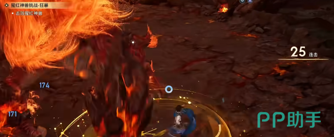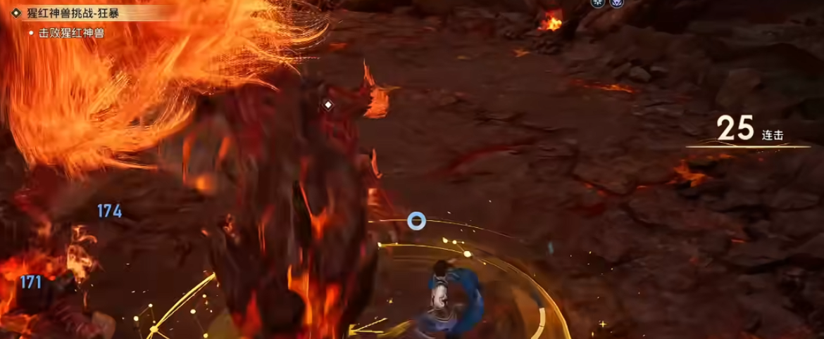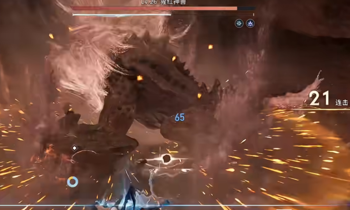 以隐藏Boss“猩红神兽”为例,其攻击模式具有明显规律:尾部为唯一破绽区域,且每间隔12秒会释放一次全屏熔浆冲击波。此时需在预警红光出现瞬间使用闪避键触发“黄金回旋”,进入约0.8秒无敌帧,同步向Boss侧后方位移,既规避伤害又切入输出位置。待Boss进入硬直状态后,立即接1A2A3连招,利用大招第三段重置冷却的特性,无缝衔接下一轮爆发。