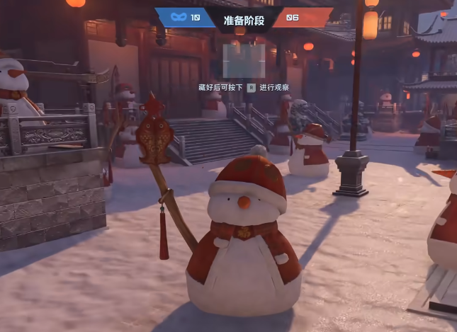 玩法采用四局制回合对抗机制。每局开始前系统自动分配角色阵营:3名玩家担任“躲藏方”,4名玩家担任“追逐方”。躲藏方拥有30秒全局静默准备时间,可在地图中任意位置变形为指定目标——雪人地图中将化身雪人造型,熊猫地图中则变为熊猫形态,具备基础伪装能力;追逐方需在3分钟倒计时内通过观察细节、声音提示及场景互动完成识别与击破。胜负判定依据为单局结束时双方淘汰人数总和,淘汰数更高的一方获胜。