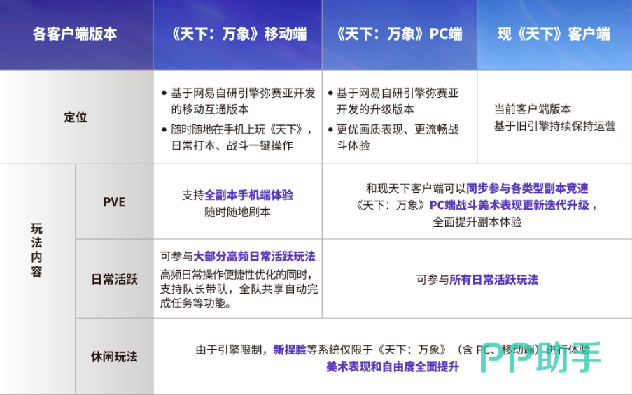 在功能层面,三端互通不仅覆盖基础角色数据,更延伸至PVE副本、日常任务、社交互动、休闲玩法等核心模块。无论使用手机通勤途中、PC端深度体验,还是通过原《天下》客户端延续习惯,玩家均可即时接入当前进度,无需重复养成。本次发布会同步公布了多项关键设计思路:《天下:万象》并非简单复刻过往版本,而是整合《天下3》《天下手游》等历代内容资源,构建统一IP宇宙,并以“经典版+赛季版”双线运营机制打破传统MMO长线绑定困局。