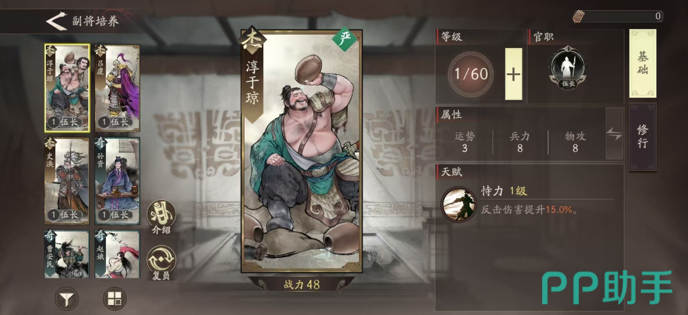 游戏中设有主副将协同作战机制,当主公等级达到42级时,可配置两名副将参战。副将可通过抽卡或寻访获得,部分强力副将如周仓(关羽专属)仅能在特定卡池中抽取。开荒期可先选用易获取且性价比高的副将过渡,待资源充足后再进行替换。虽然副将在前期作用有限,但在中后期将成为战术搭配的重要组成部分。