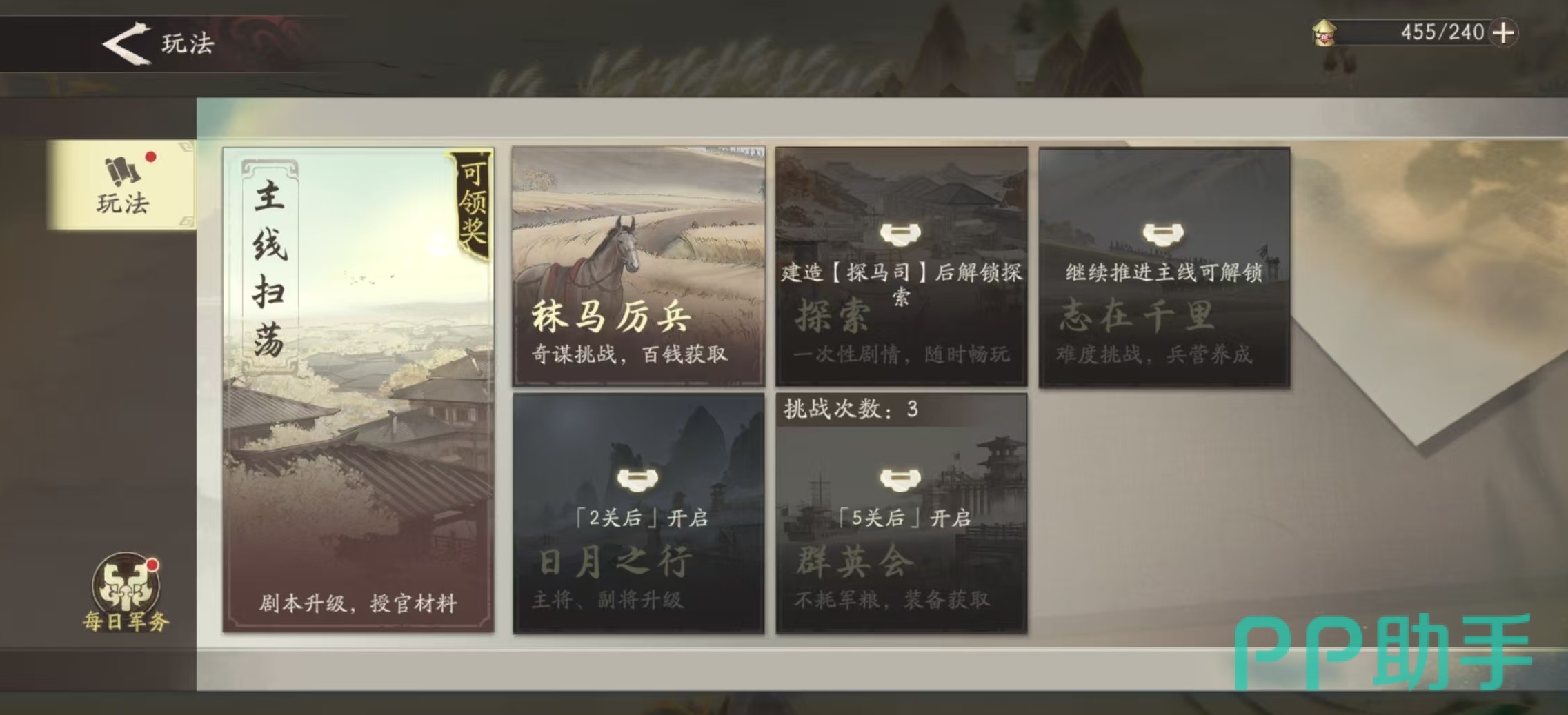 战斗系统内嵌属性克制规则:勇克巧,巧克严,严克勇。出战前务必观察敌方阵容属性构成,针对性地选择克制型武将上阵。正确运用克制关系不仅能造成额外伤害,还能加速战意积攒,从而更快释放技能压制对手。资源管理方面,体力包每天可购买4次,普通玩家建议只购首次数次即可。优先完成主线与日常任务,升级后挑战副本至最高层数以获取丰厚奖励,并将主力武将的培养模块刷满。每日必做活动包括亲兵征集、每日军务、秣马厉兵、群英会、志在千里,务必全部完成以免遗漏收益。