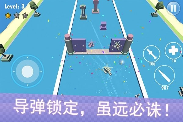 游戏运用真实立体画面,将空战全景、写实场景与梦幻色彩相融合,营造沉浸式氛围,屏幕中弹爆裂效果更是增强真实感。游戏中,我们能驾驶依据现实高档直升机打造,或有科幻感的直升机,能通过固定按键与重力感应结合的方式,实现复杂操控。此外,游戏模式、任务丰富,支持飞机与武器升级,追求挑战或空战体验的玩家,都能在其中找到乐趣。