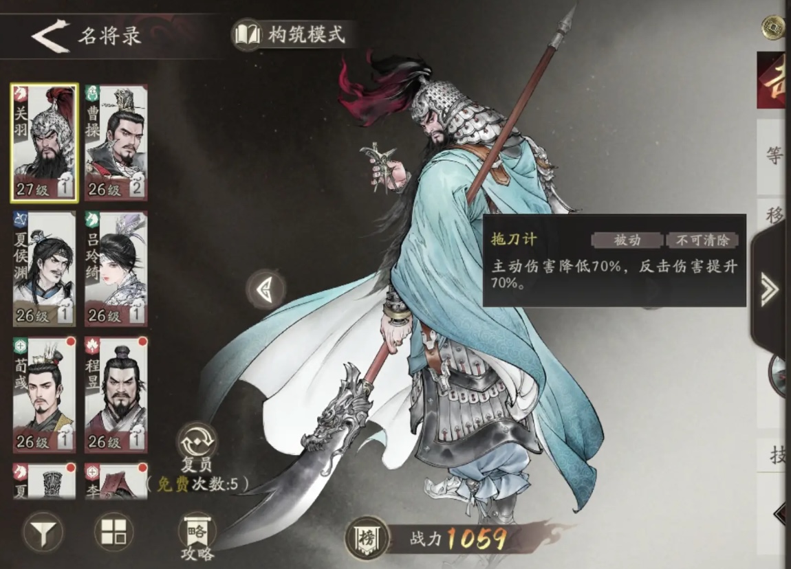 关羽的核心机制在于其主动攻击后的额外行动能力。每次发动普攻或技能后,若未能击杀目标,则会进入“拖刀计”状态,该状态下可有效降低自身主动技能的冷却时间,并显著提升反击伤害。若成功斩杀敌方单位,则可积攒一层“武魂”,每层武魂提供5%的伤害加成,最多叠加两层,为后续战斗提供稳定的增益支持。