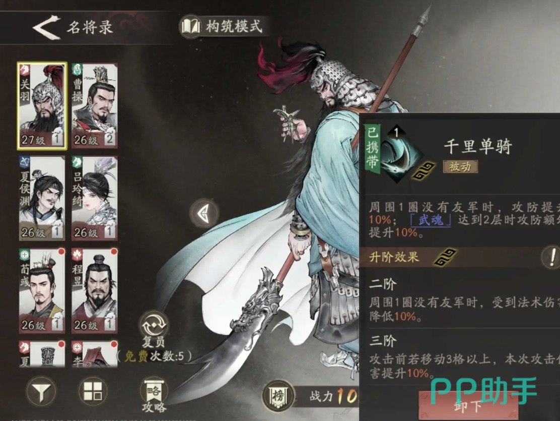 综上所述,《三国望神州》中的关羽是一位兼具爆发与持续作战能力的顶级武将。凭借流畅的技能循环、高效的资源积累机制以及出色的单兵作战素质,他能够在多种阵容体系中发挥关键作用。无论是前线突进还是精准斩杀,都能展现出极强的适应性与战略价值。