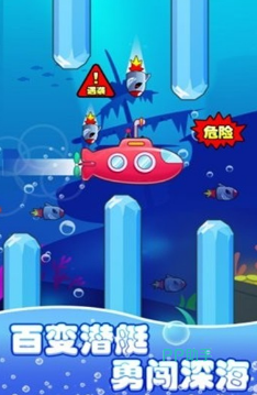 广阔无边的海底世界,对于很多人来说都充满着各种遐想,您在开局后将要操控整潜水艇,在海底世界里展开一系列的冒险之旅。在海底探索时,随机会出现各种各样的障碍物以及各种危险,玩家要有极强的注意力,当遇到障碍物时及时躲避,可通过上下移动潜艇的方式跨过障碍物,游戏看似玩法特别简单,但是却极具挑战性。