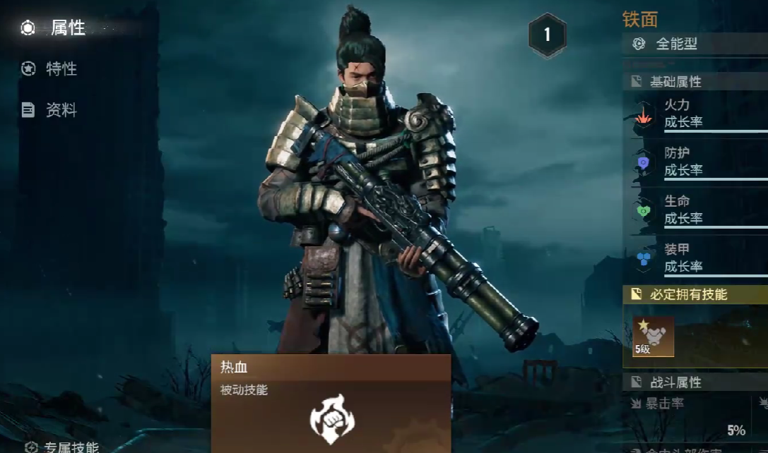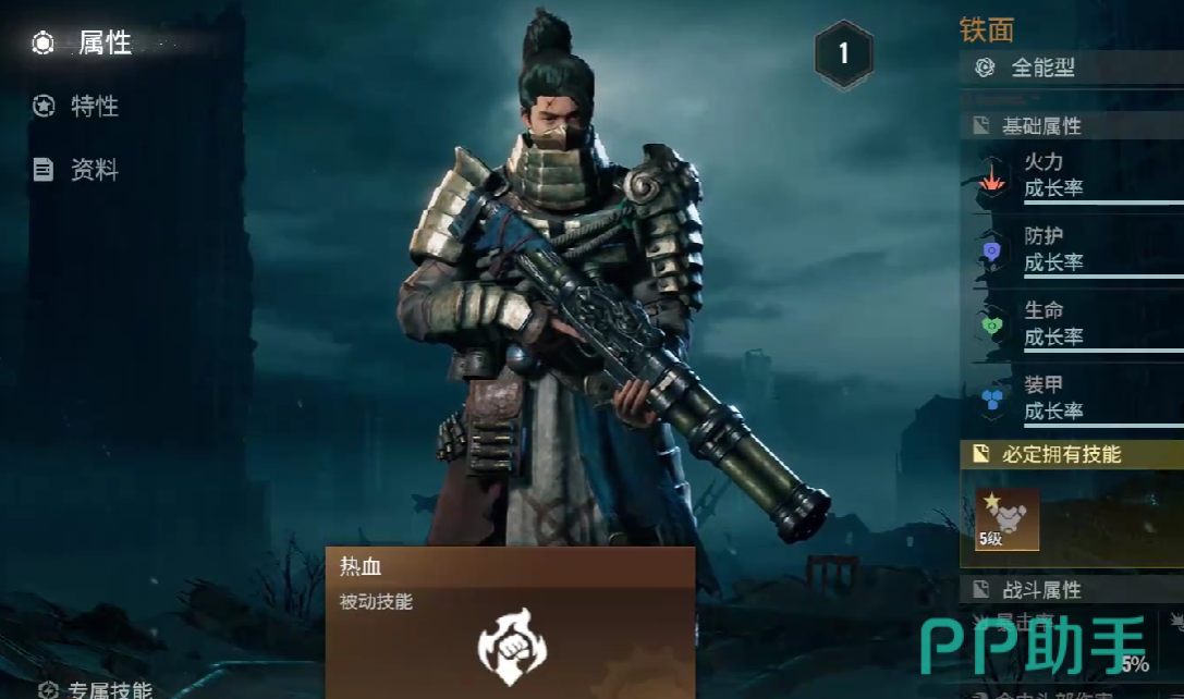 铁面的核心装甲成长率,在所有角色当中,排名第三,生存能力突出,火力成长率中等偏上,依赖技能补充,但整体而言,技能伤害也是非常能打的。