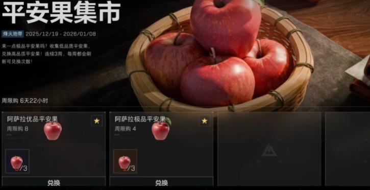平安果集市为本次活动的关键兑换中枢,每周设有兑换次数上限。兑换规则为:3个相同品质的平安果可合成1个更高阶的优品;2个优品可进一步合成1个极品。目前尚未公布各难度地图中平安果的具体掉落率,建议玩家前期以积攒为主,待活动中期再集中兑换。需注意的是,平安果存在红色稀有奖励,但保底机制可能导向怀表等其他红色道具,非必出武器类红装。