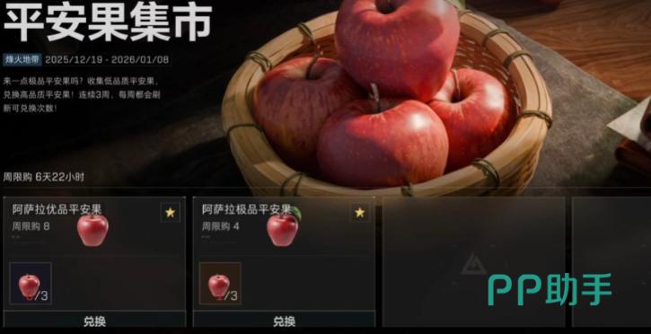 除圣诞树互动外,平安果还可通过多种途径获取:其一,在常规地图中搜索工具柜有概率直接拾取;其二,完成每日在线时长任务可领取基础奖励,并积累代币用于外观兑换;其三,在撤离模式及全面战场中推进指定暖冬季任务链,持续产出活动代币。