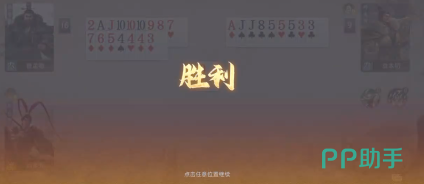 以虎牢关第三关为例,该关卡设计巧妙地体现了上述两种应对思路。建议在此局中使用关羽作为主力角色。由于此战中的吕布担任地主身份,当其打出顺子时,你可以用一张9左右的小牌配合已有手牌组成可压制的顺子结构。若此时还能获得一张万能牌,则有机会与剩余手牌组合成炸弹,提升控场能力。