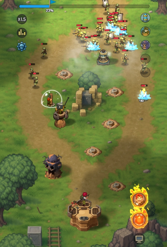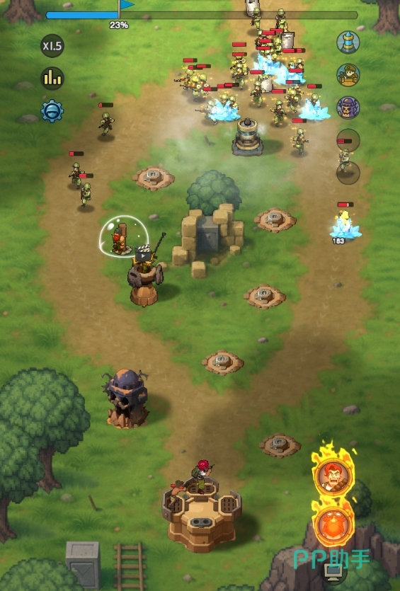 本作采用“塔型适配+地形约束”双轨设计:每关可部署的防御塔数量受限,且仅允许置于预设点位。建议优先将攻击范围较小的塔布设于路径交汇口或狭窄隘道,最大化单位时间命中率;而大范围覆盖型塔则适合安置于边缘高地或远端平台,发挥其远程压制优势。该设计倒逼玩家深入理解地图结构与敌人行进规律,强化战术预判能力。